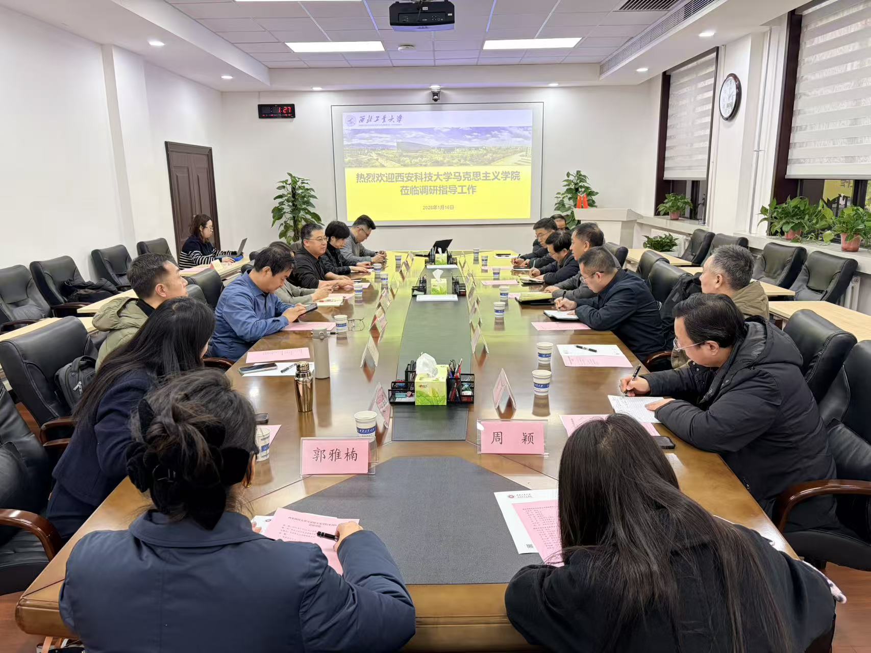为深入学习兄弟院校学科建设的先进经验,推动马克思主义理论学科高质量内涵式发展,2026年1月16日下午,由院长高振岗带队,一行8人赴西北工业大学m88 app开展专题调研交流。西北工业大学m88 app党委书记王彦革主持座谈会。