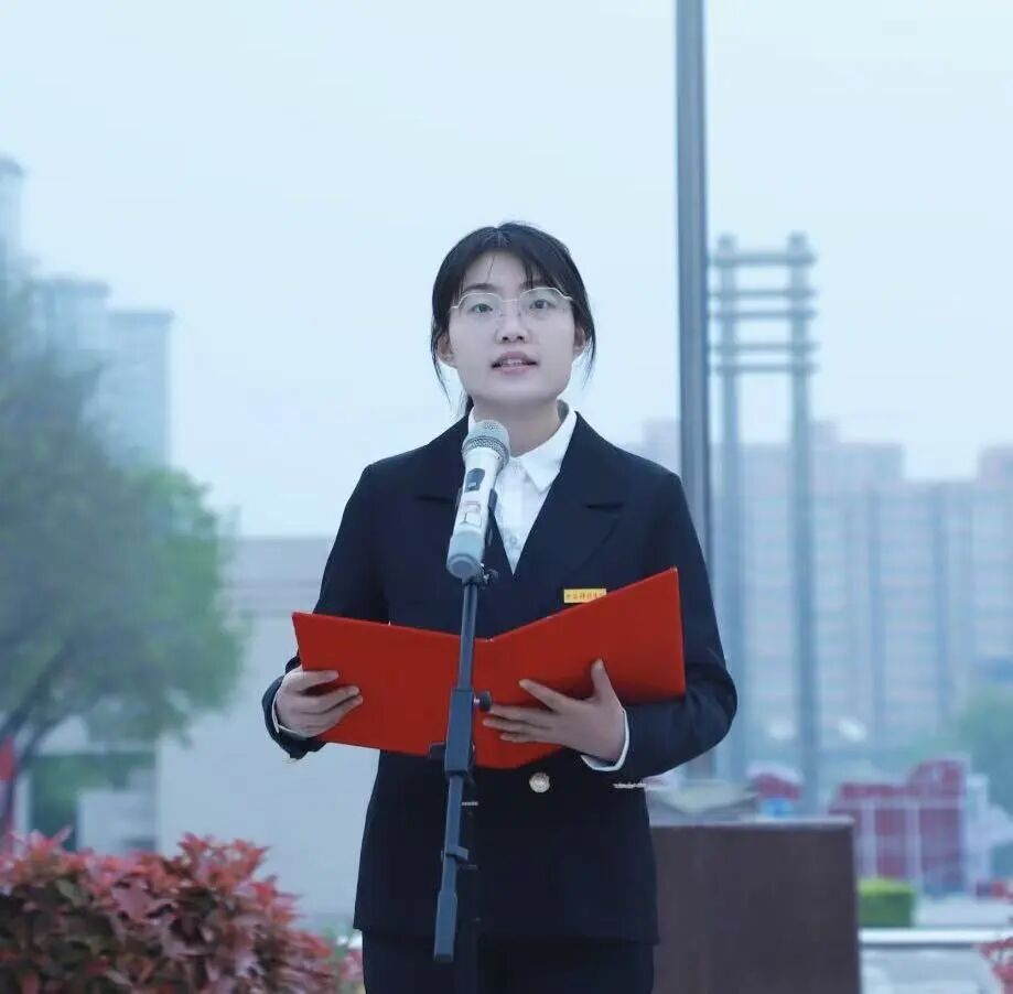 4月13日清晨,晨光初照,红旗飘扬,西安科技大学骊山校园明德广场举行升国旗仪式。m88 app红言宣讲团讲师丁丹丹以《赓续红色血脉 勇担青年使命》为题作国旗下主题宣讲,以深情话语回望百年党史,以青春之声回应时代召唤,为西科学子注入信仰力量。
